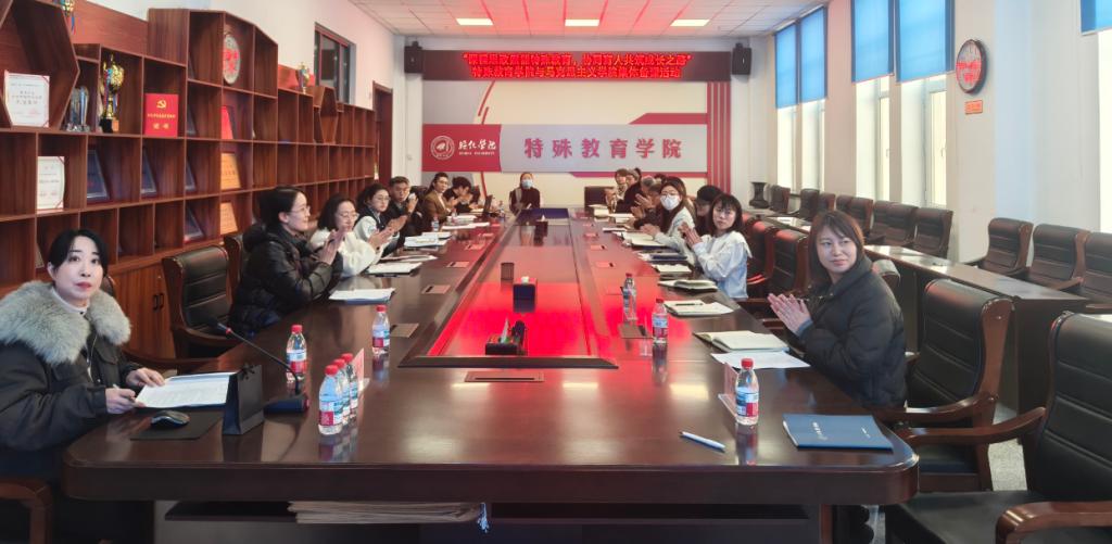 11月19日,我院以“课程思政赋能特殊教育,协同育人共筑成长之路”为主题,举办课程思政融合集体备课活动,特邀马克思主义学院习近平新时代中国特色社会主义思想概论教研室主任姜丹丹老师担任指导,活动由特殊教育教研室教师张百慧主持,学院全体教师共同参与。本次活动以“跨学科教研联动”为创新抓手,深入探索思政元素与特殊教育专业课程的有机融合路径,为学科建设注入思政活力,切实落实新时代立德树人根本任务。