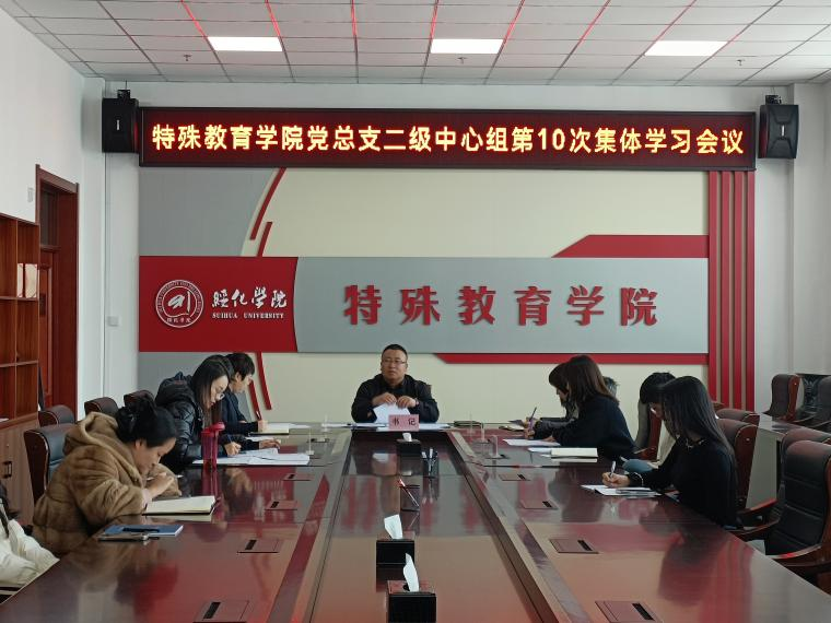 12月3日,特殊教育学院党总支在崇德楼307会议室召开理论学习二级中心组(扩大)2024年第十次集体学习会。党总支书记卜凡秀主持会议并讲话,全体党总支委员参加会议,科级干部、党支部书记、辅导员列席会议。
