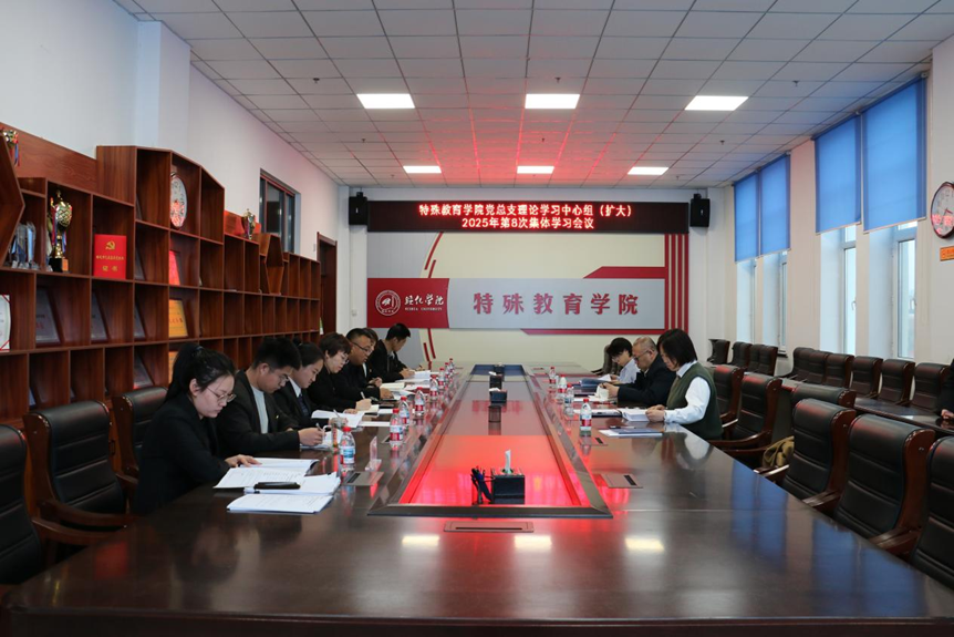11月12日下午,特殊教育学院党总支在崇德楼307会议室召开理论学习中心组(扩大)2025年第8次集体学习会议,全体理论学习中心组成员、党支部书记、辅导员参加,会议由学院党总支书记卜凡秀主持。学校党委副书记卢百胜、食品与制药工程学院党总支书记司畅、食品与制药工程学院辅导员杨天琪列席旁听。