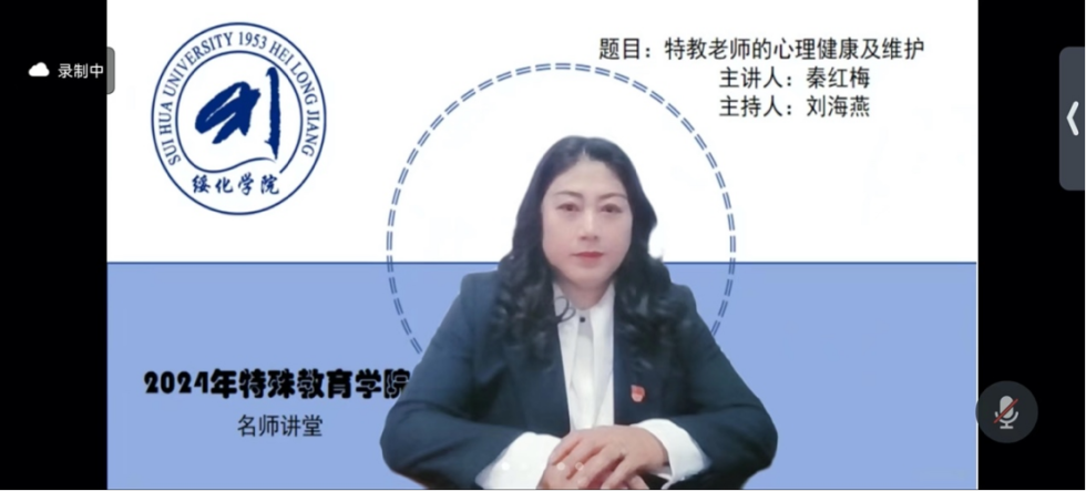 4月25日下午,铁力市特殊教育学校校长秦红梅以《特教老师的心理健康及维护》为题开展第五场讲座。特殊教育学院全体教师和2021、2022级学生参加培训。特殊教育学院教师刘海燕主持本次讲座。