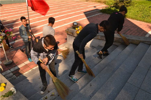 师生们清扫了烈士陵园,擦拭了革命烈士碑和墓碑,为革命烈士敬献了鲜花。团总支副书记邹山丹宣读了《让青春与文明同行》倡议书,号召同学们牢记历史,圆梦中华,并要求同学们养成文明习惯,理性爱国,做一名有信念,有梦想,有奋斗,有奉献的好青年。