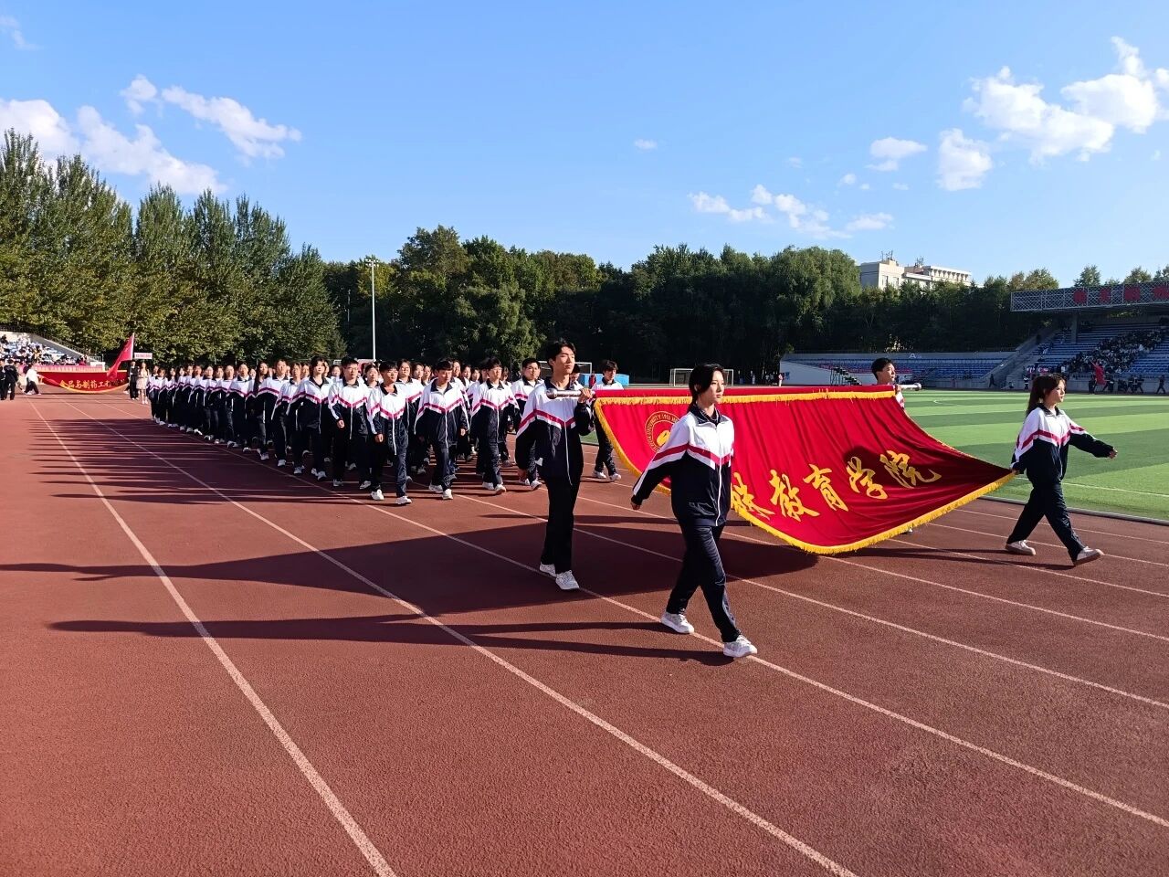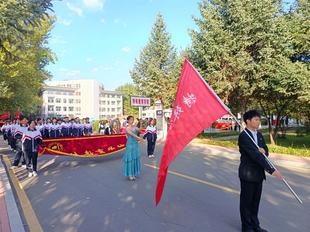 开幕式上,伴随着激昂的《运动员进行曲》,各学院方阵依次入场,本次运动会的大幕正式拉开。我院检阅方阵身着统一服饰,神采飞扬,他们步伐铿锵,口号震天,目光如炬,生动彰显了特殊教育学院学子奋发向上的青春风采与锐意进取的精神姿态。